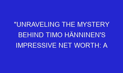 Wealth is something that fascinates all of us, whether it is the millions that we see celebrities make or the billions that we see business tycoons accumulate. Timo Hänninen, a Finnish businessman, is one such individual whose net worth has been a topic of intense discussion around the world. Many people have tried to unravel the mystery behind his impressive net worth, but the secrets have remained just that – secrets. However, with an in-depth analysis, we can try to understand how he made his fortune and why his name is so well-known.