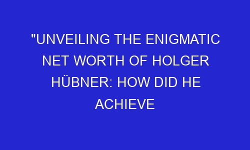 Unveiling the Enigmatic Net Worth of Holger Hübner: How Did He Achieve Success?